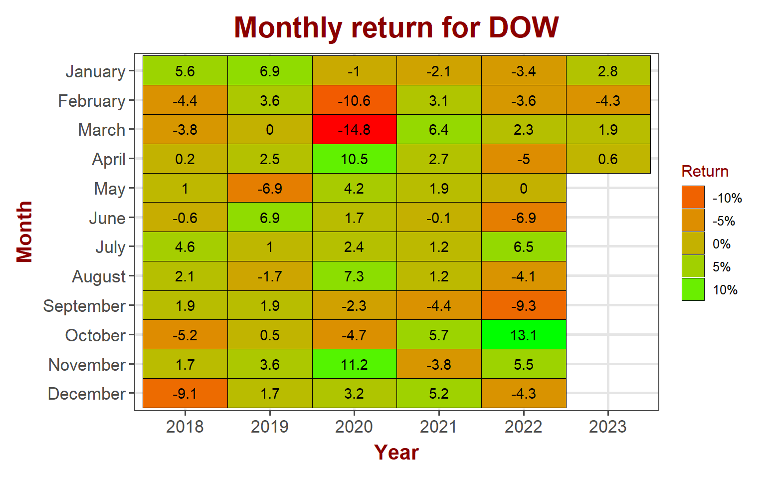 Contrary to the trend, DOW gained 0.6% in April so far.