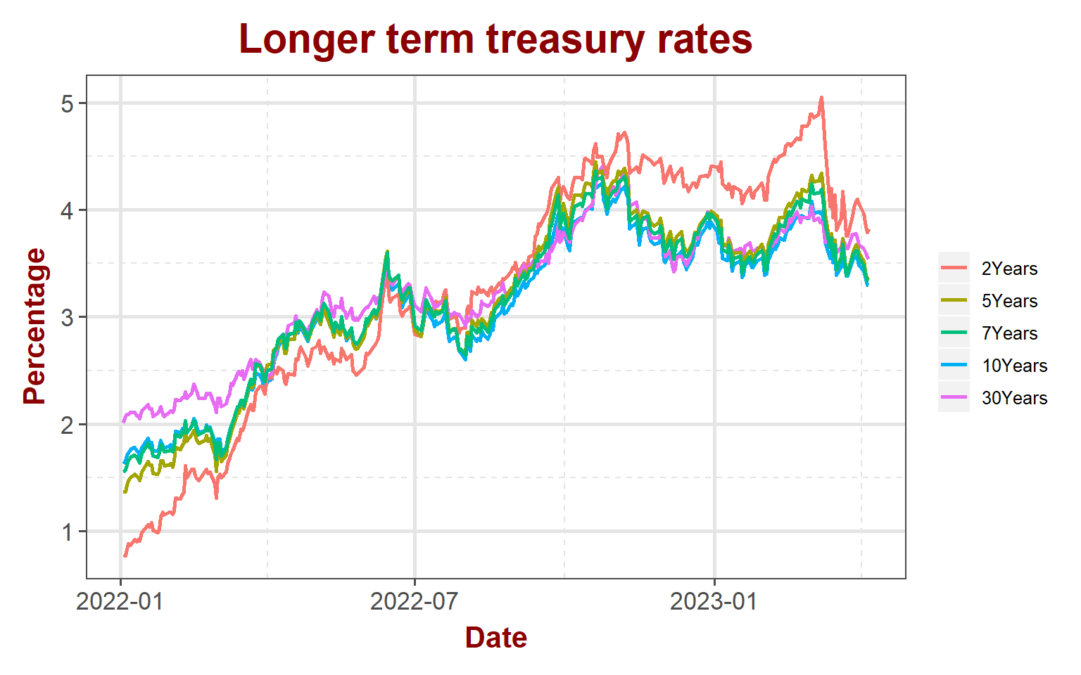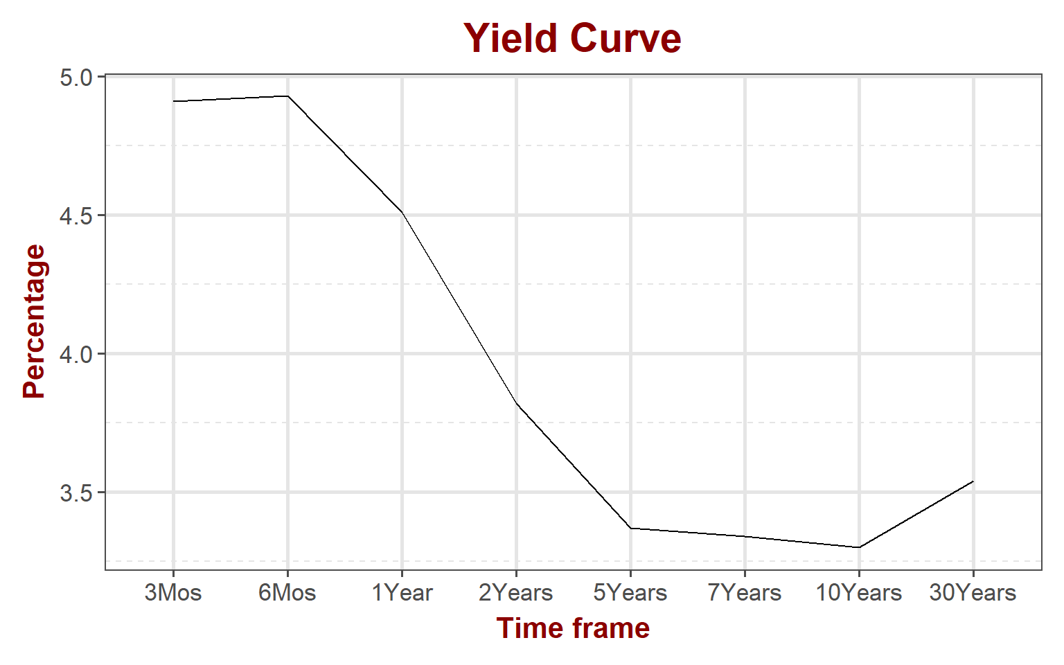 Yield curve continues to flatten on the higher end. On the lower end, it is still very steep sloping negatively. Appears to be a long way ahead for it to at least flatten.
