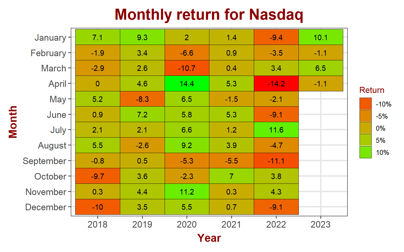 Nasdaq’s 1.1% loss this month so far pales in comparison to what it did in April in the last 4 years. Like S&P, it’s losses/gains in April are historically high.